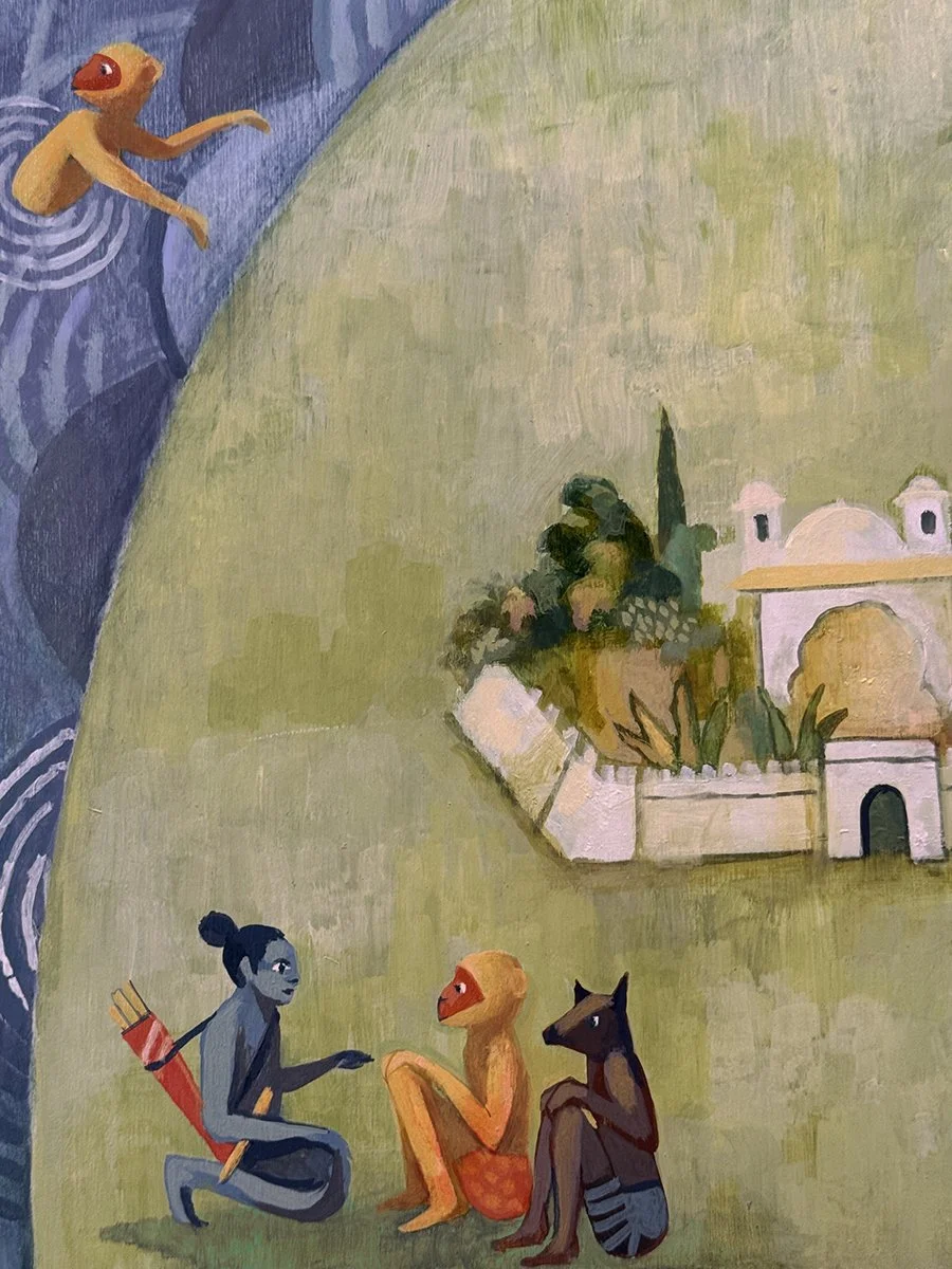 Encounter in Lanka; (detail); R Williamson, acrylic on wood panel; 18” x 12” x ¾”; 8/25