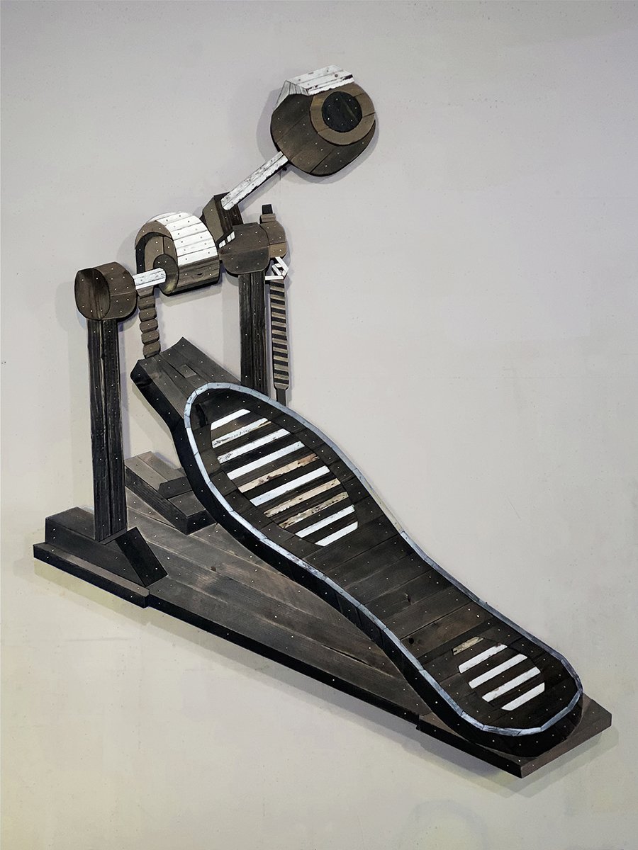 I’ll be tending the COCA Gallery tomorrow (April 18, ‘26) as part of my participation in ‘Knock On Wood’, the current sculpture show curated by Kelly Lyles. The show features 35+ local artists who all work with wood occasionally, in all the many ways. I’ve got this one piece on display there from several years ago, ‘ExtraPlay Super’. An homage to all the drummers out there and specifically my high school era trap set of the same name.